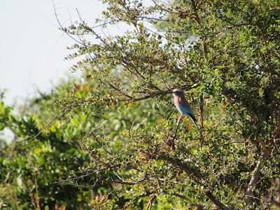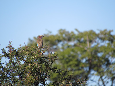 除了象群,還觀察到樹上的七彩鳥 European Roller,身上的絢爛色彩非常吸睛。車子以尋找野生動務的速度慢駛,隨著時間推移,夕照將草原變成滿地的金黃,畫面好不真實,開枝散葉的大樹以特殊的姿態矗立,一種在非洲才找到的姿態。想起了三毛:「如果有來生,要做一棵樹,站成永恆,沒有悲歡的姿勢,一半在土裡安詳,一半在風裡飛揚,一半灑落陰涼,一半沐浴陽光,非常沉默,非常驕傲,從不依靠,從不尋找」。不依靠也不尋找,我也想成為這樣一棵安詳的大樹,非洲草原可以富有生命力,也能富有詩意。