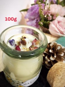 ★使用複方純精油,花香帶著柑橘的清新,有時會加入木調香味。可以選擇是否搭配多種乾燥花瓣,點燃後漂浮於燭面,兼具視覺與嗅覺雙響宴。