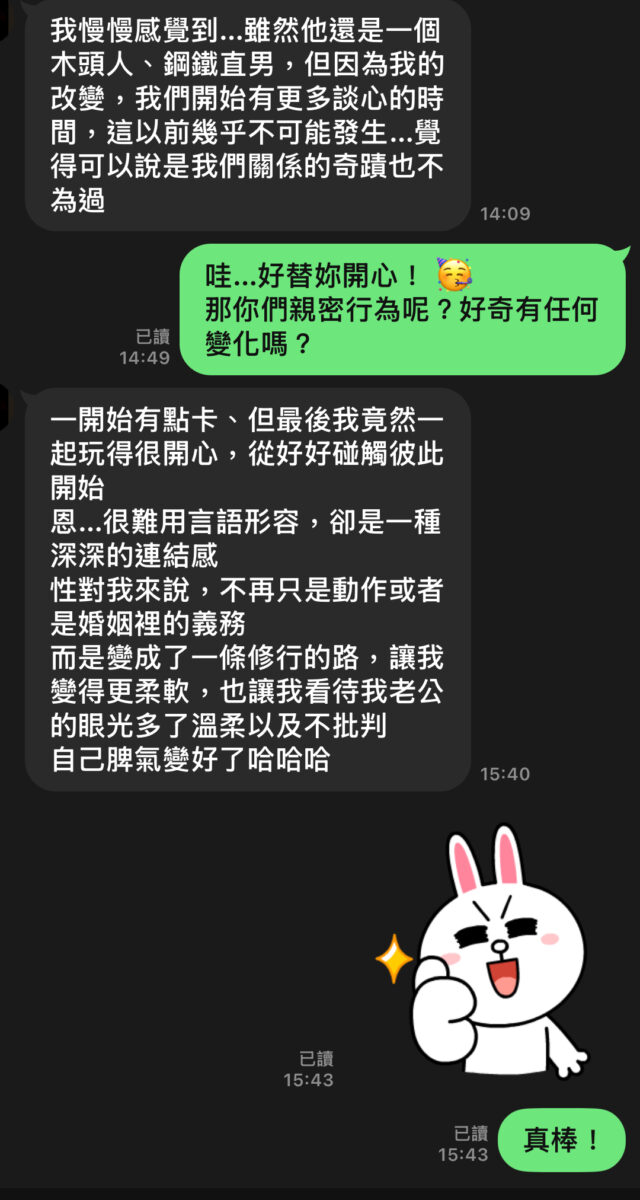 ➢ 即使以前對親密感到害怕,也能逐步敞開自己