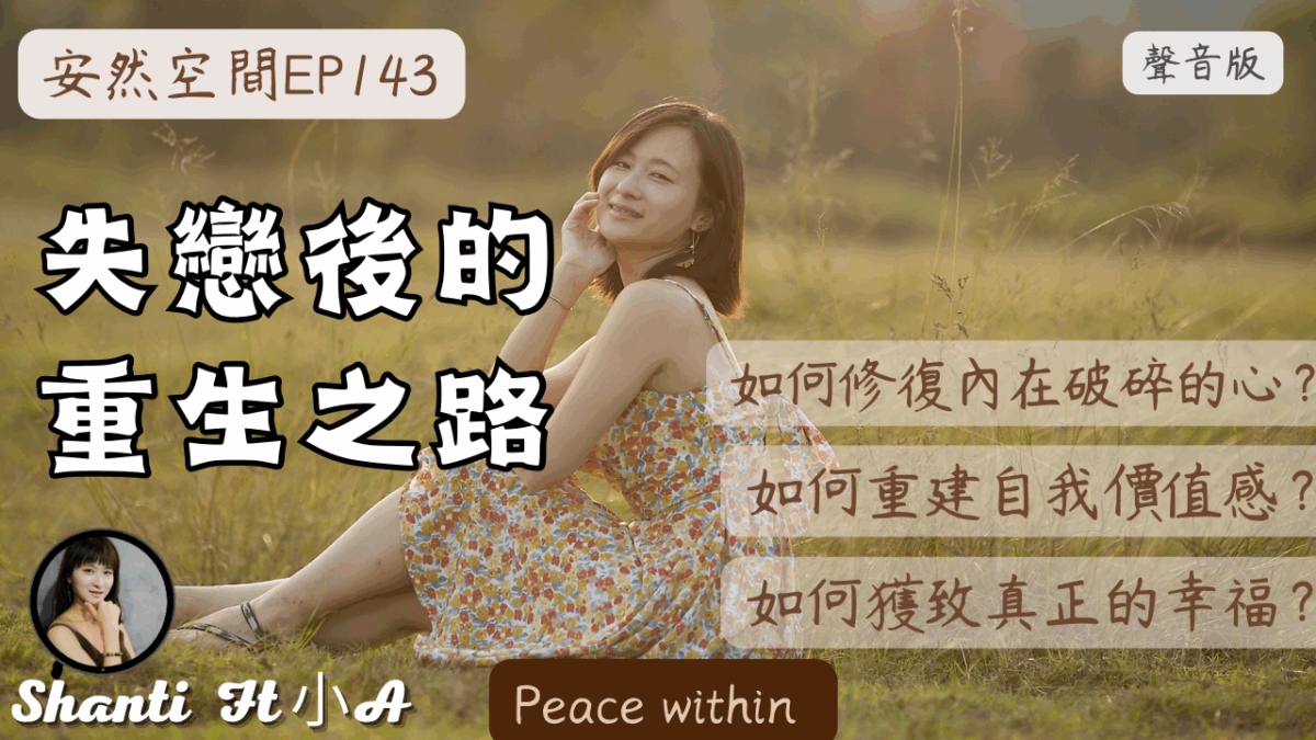 從情傷谷底到活出自己:她如何在8個月內重建自我、不再為愛迷失?.當關係結束,我們常常感覺像失去了整個世界。但其 … 閱讀全文 【安然空間】EP143 《經驗分享 | 失戀後的重生之路》–人生教練Shanti Ft. 小A