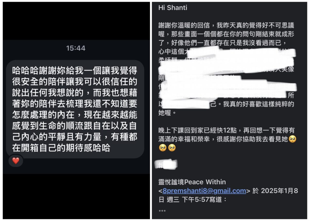 透過潛意識探索與引導,走過療癒與轉化階段,回到生活自然有更多的平靜與力量。非常開心N(左)與小怡(右)各自在教練陪伴過程中越活越喜悅&開展!